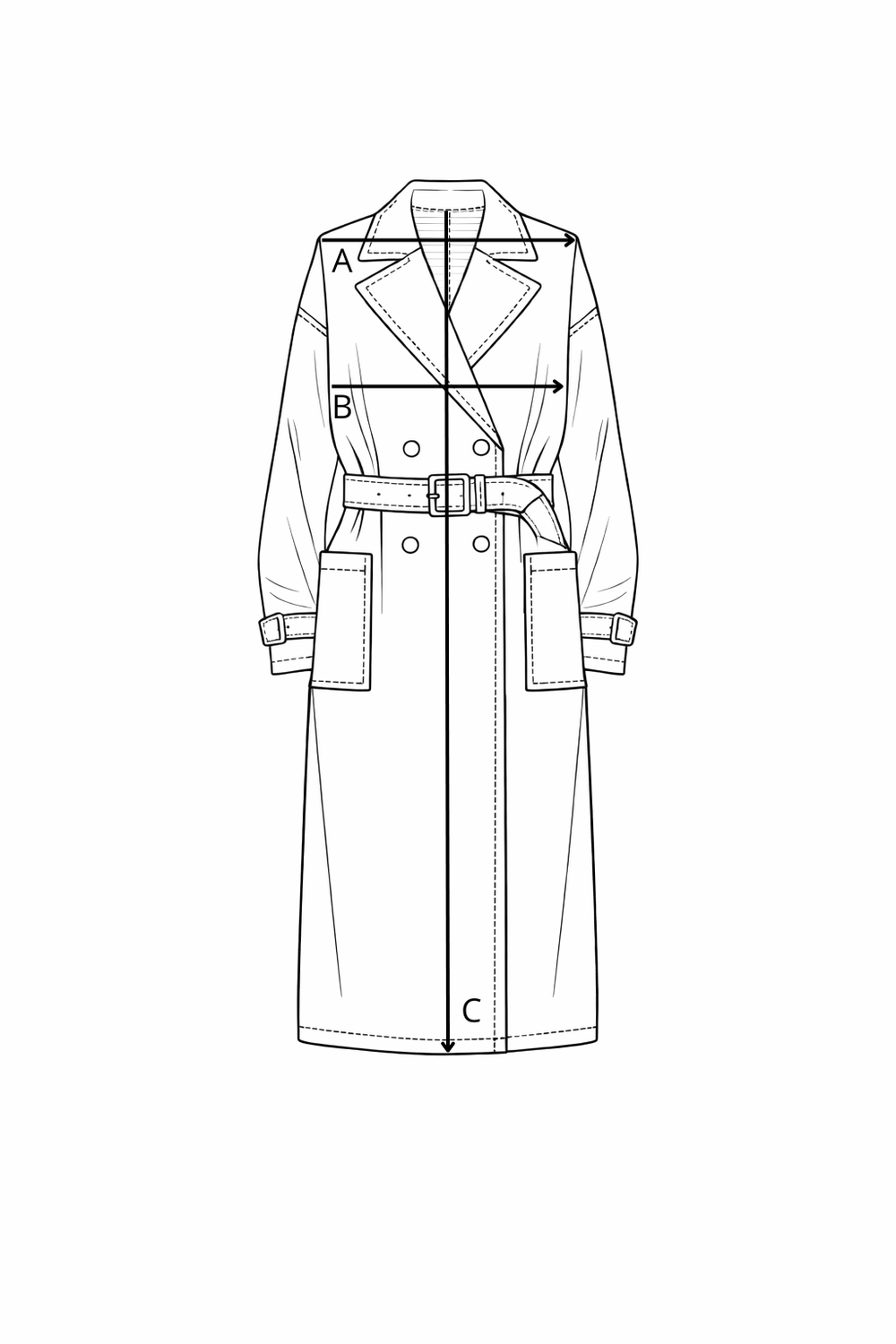 A: Shoulders B: Chest C: Length