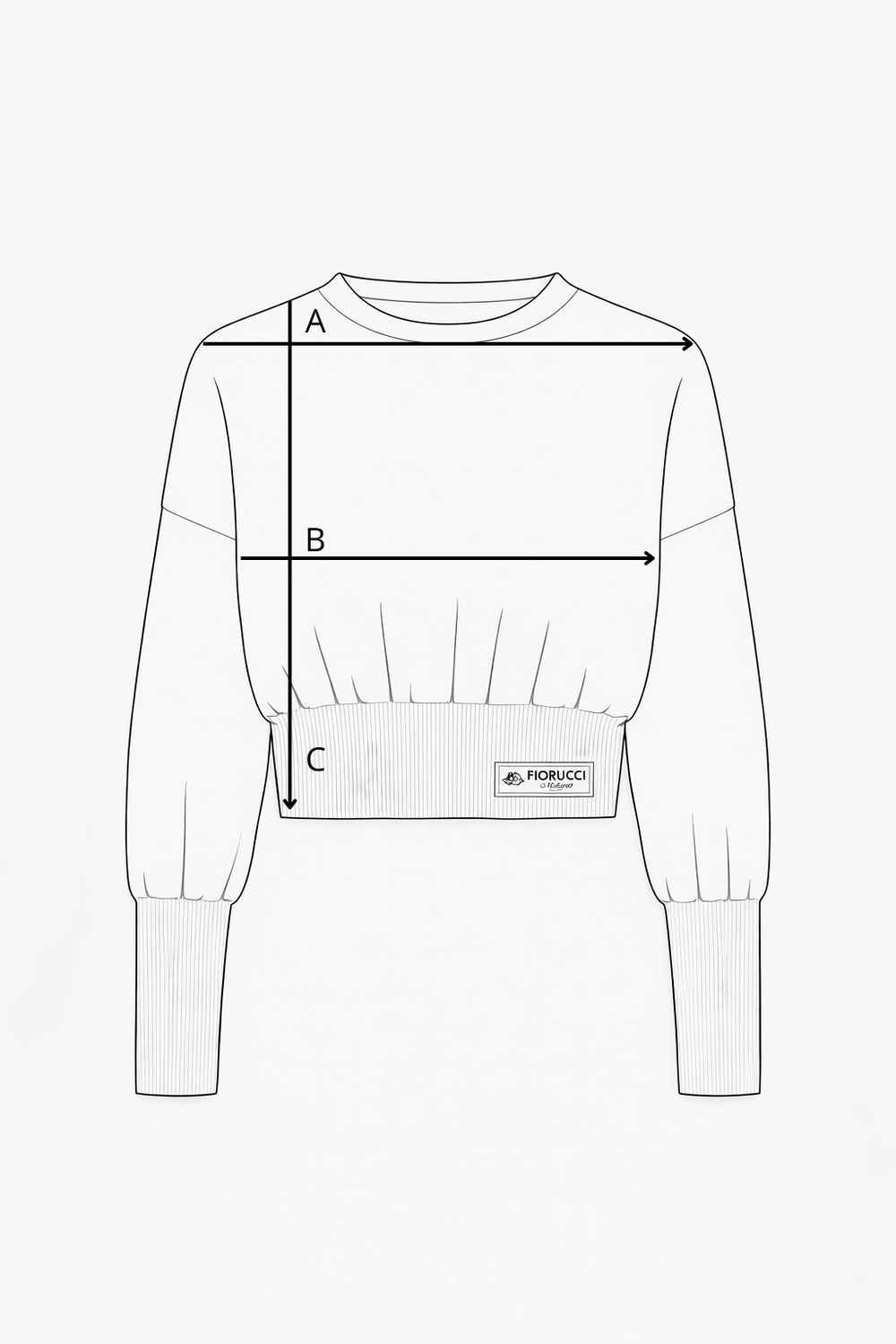 Puffy Long Sleeve Knit Top in black, featuring a fitted lower section with light gathering along the bottom band that creates a soft volume effect. The sleeves are slim through the forearm and open into a subtle balloon shape on the upper arm. Finished with the Fiorucci logo label at the front waistband. Made in Italy.